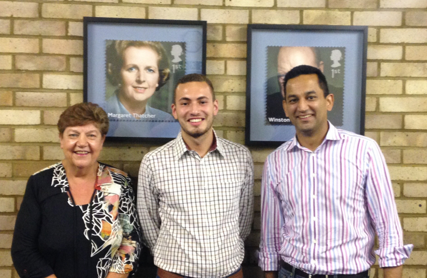 Chris Criscone(Centre) is welcomed as the new Chairman of Loughton Conservatives by Association Chairman, Cllr Gagan Mohindra and local County Councillor Mrs Valerie Metcalfe.